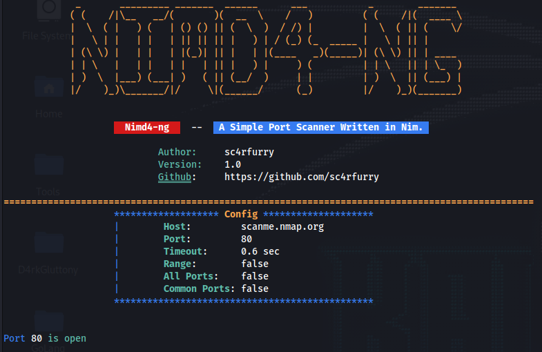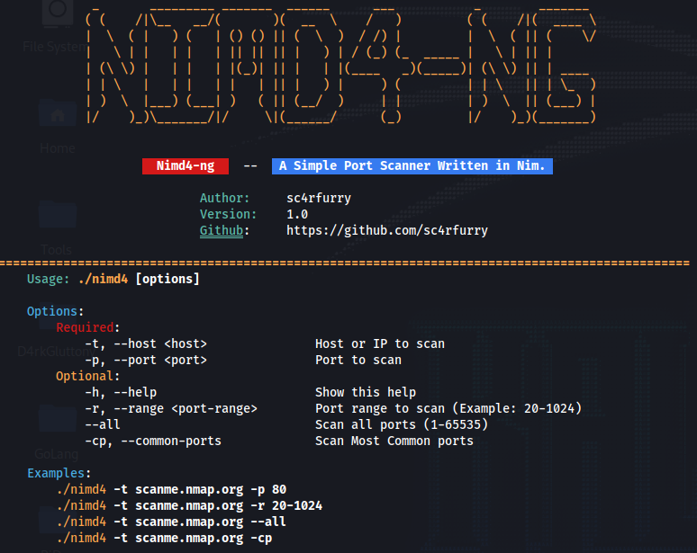 ./nimd4 -h/--helpFor single port scanning.