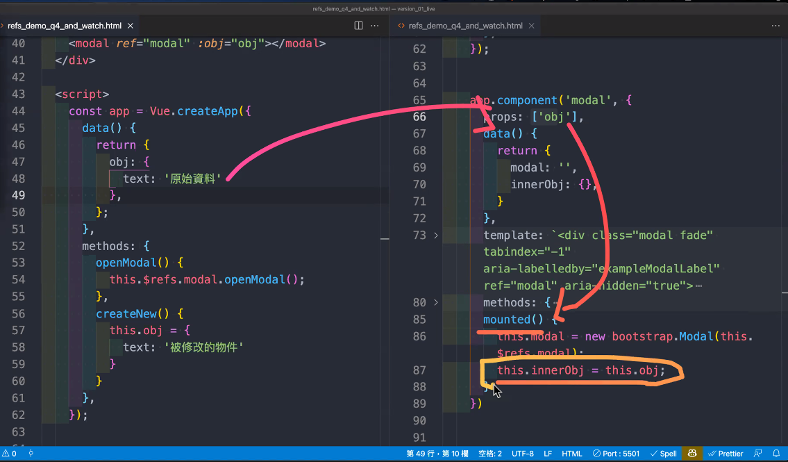 mounted()的時候傳送資料過去- 所以不會同步更新資料
