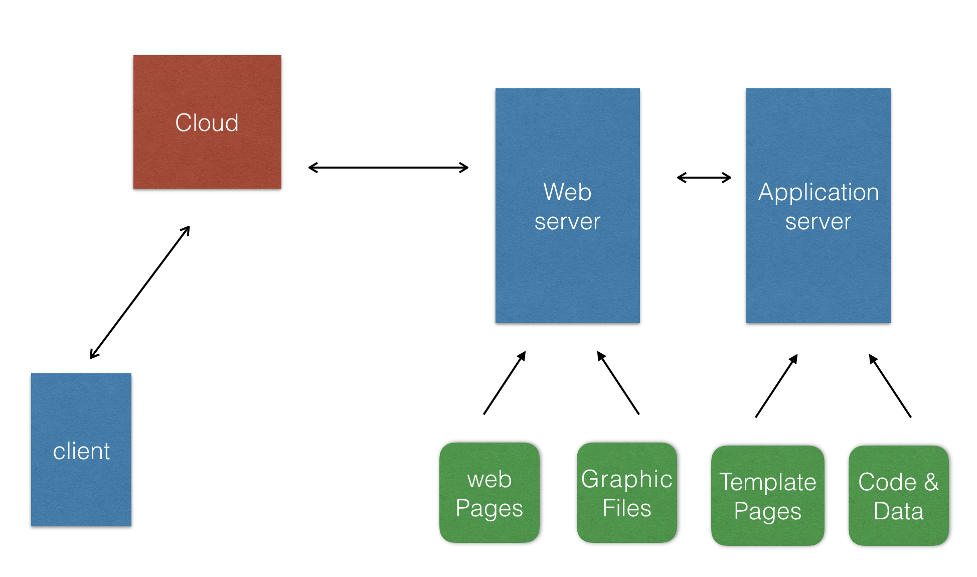 目前,应用服务器和 web 服务器之间的界线已经变得模糊不清了,但是人们还把这两个术语分开来。当有人说到 web 服务器时,我们通常要把它认为是以 HTTP 为核心、web UI 为向导的应用。当有人说到应用服务器时,你可能想到“高负载、企业级特性、事物和队列、多通道通行(HTTP 和更多的协议)”,但现在提供这些需求的基本上都是同一个产品。