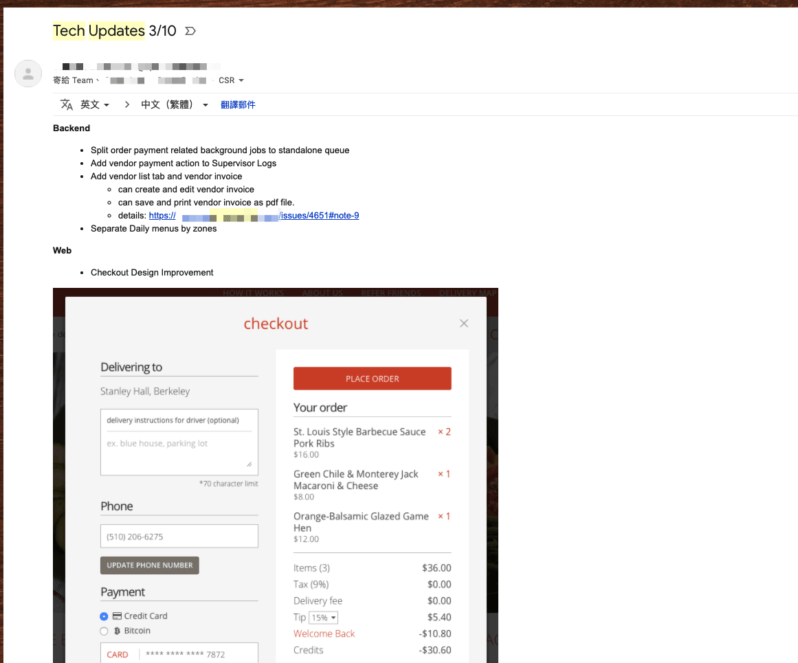 后来,我有一次出差去美国以后,实际坐在 CS Room 跟美国同事一起工作以后,才发现问题在哪里。在台湾的时候,我们都是对著后台数据,模拟可能的下单行为,而从来没在美国实际点餐过。