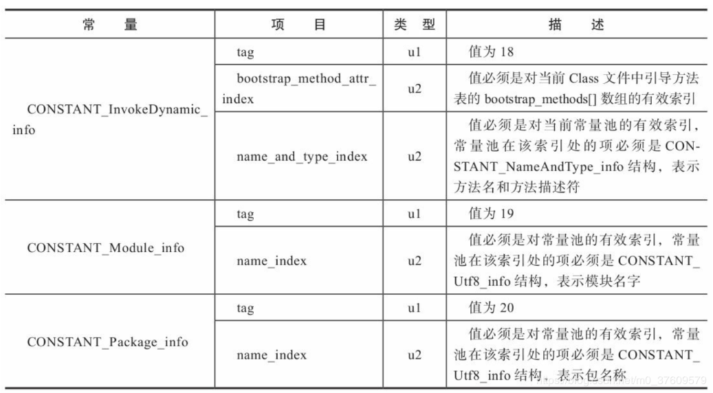 | CONSTANT_InvokeDynamic_info | 18 | 表示一个动态方法调用点 |