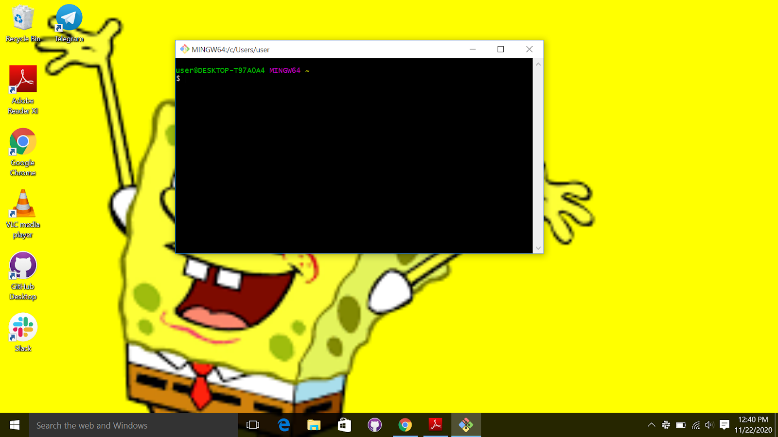 For windows just search and open “git bash" When you open “git bash", you should get something that looks like the image below.
