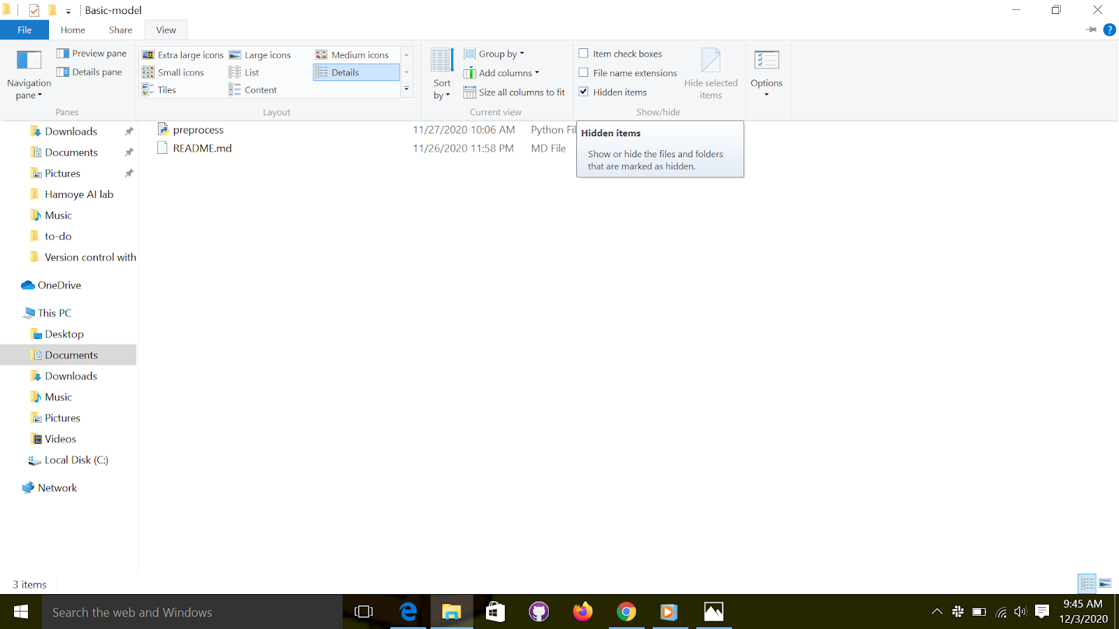 This will create a hidden folder git, to see this hidden folder on "windows" you go to “view” on the folder and check the hidden items, as shown below.
