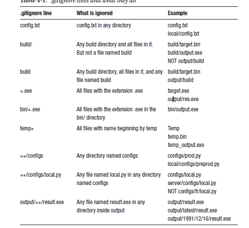 Take your repository from the previous exercise and create multiple files and directories. Check Table 4-1 and try to ignore the files that you created using each line. Create as many files as you need, and don’t stop until you understand each pattern. No need to remember everything, but you should at least have an idea of when they should be used.