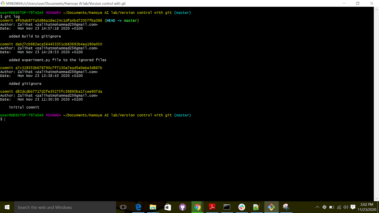 git commit -m "Added gitignore"