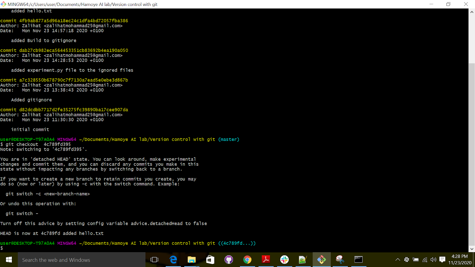 Remember the commit names we talked about earlier? We are going to use them in this section to switch between versions.